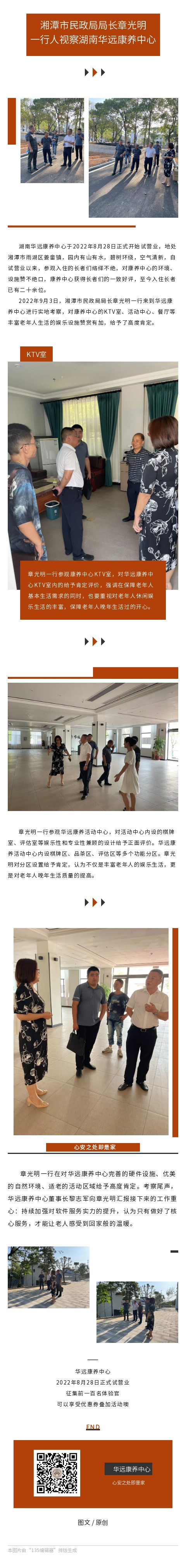 湘潭市民政局局長(zhǎng)章光明一行對(duì)華遠(yuǎn)康養(yǎng)中心實(shí)地考察