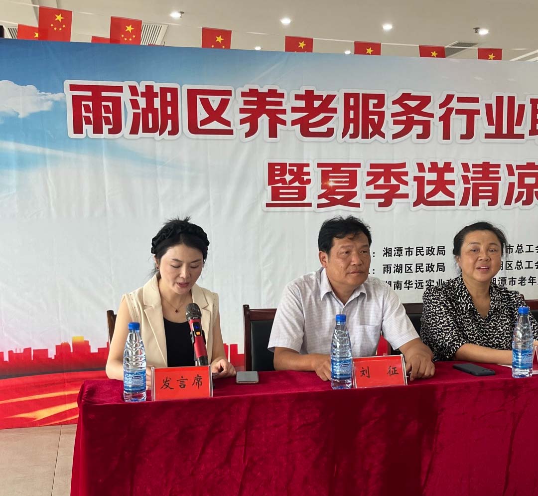 8月23日,雨湖區(qū)養(yǎng)老服務(wù)行業(yè)聯(lián)合工會授牌儀式暨夏季送清涼活動(dòng)在我院舉行。區(qū)總工會黨組書記、常務(wù)副主席劉征,人大常委會副主任、區(qū)總工會主席譚聯(lián),市總工會黨組成員、副主席羅軍,湘潭市民政局黨委委員、副局長韓賢海,雨湖區(qū)委副書記蔣文武,市工會組織部部長劉志勇,以及來自雨湖區(qū)各養(yǎng)老機(jī)構(gòu)的負(fù)責(zé)人代表參會,雨湖區(qū)民政局黨組書記、局長干建暉主持會議,華遠(yuǎn)康養(yǎng)中心法人譚燦任首屆工會主席。